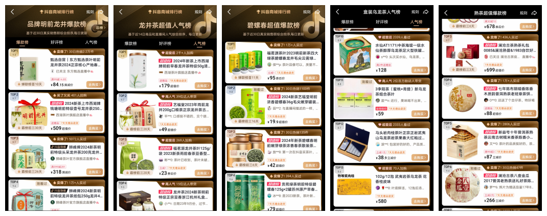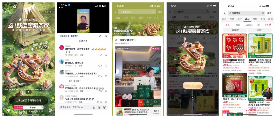 随着全域兴趣电商模式的持续深入,抖音商城精准洞察用户需求,借助抖音整合平台多维资源位,强化流量配置扶持,助推优质茶类品牌集合“上架”,为消费者提供丰富优质的产品选择,也为货架场景下的品牌营销,建立起更精细全面的销售链路。