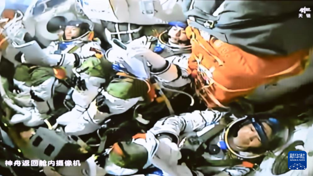 这是4月26日在北京航天飞行控制中心拍摄的神舟十八号航天员乘组。