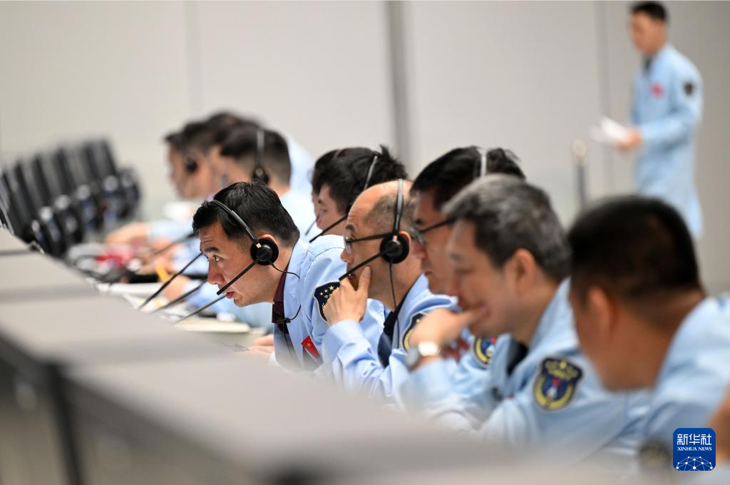 4月26日,在北京航天飞行控制中心,工作人员在紧张工作。
