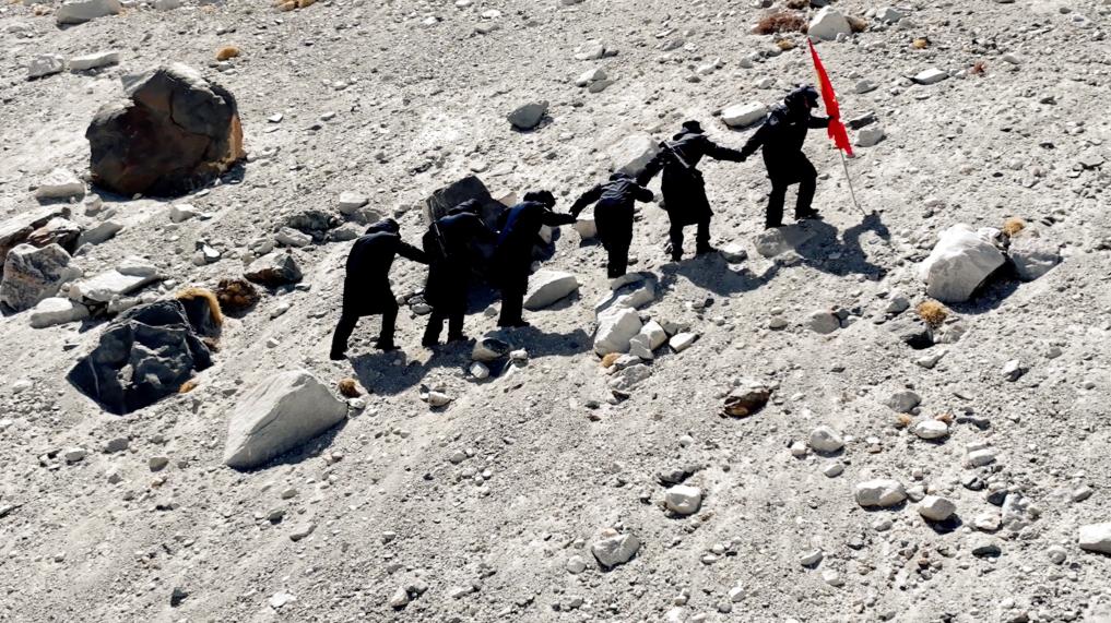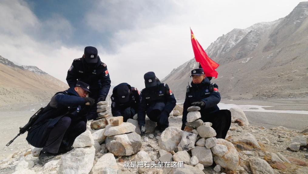 又经过4个小时的跋涉,巡逻队最终抵达本次巡逻的终点。每次到巡逻任务结束,都会在这里留下一个小石头,并许下一个愿望,祝祖国繁荣昌盛,也祝自己心想事成。