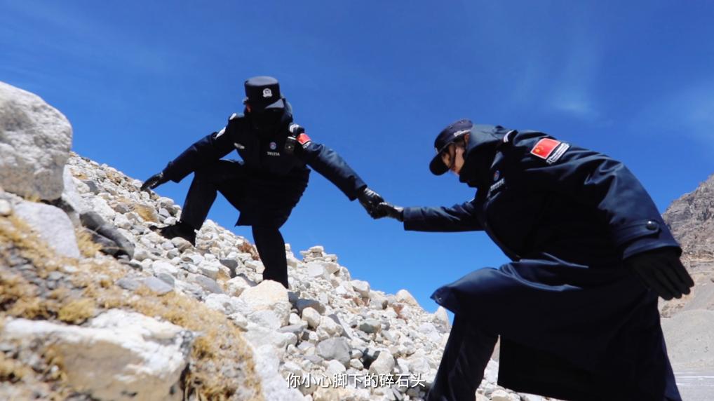 一路上,巡逻队经过了冰塔林、冰川,穿越了碎石滩,“踏上路程的时候是有点紧张和忐忑的,因为感觉其实这路很烂,全是乱石堆,就很害怕自己没办法坚持下来,因为从来没有到过海拔这么高的地方”,新警彭莉紧张地说道。