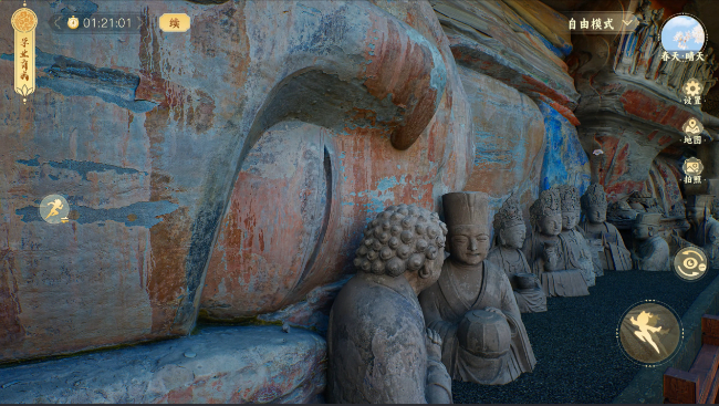 据项目相关人士介绍,《云游·大足石刻》基于毫米级的高精度数字孪生建模和实时云渲染技术,不仅精确记录了大足石刻的每尊雕像和景观,还为用户提供了8K影视级的视觉呈现和自由开放的探索路线。用户可以通过该线上场景自由在景区中游览。