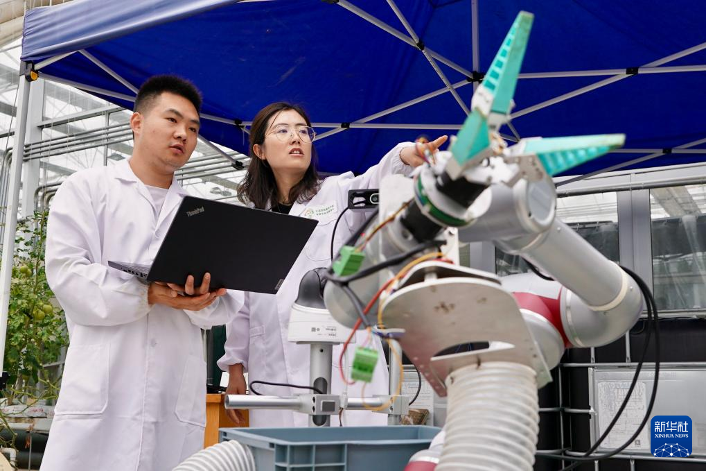 记者5日来到江苏省农业科学院的科研展示温室,看到无土栽培的番茄“喝”营养液生长,不同品种的番茄在人工智能调控的适宜温度下长势正好。工作人员正在操控采摘机器人开展采摘作业实验,机械手以旋转的方式轻松“摘”下番茄,而且不会把藤蔓拉断。
