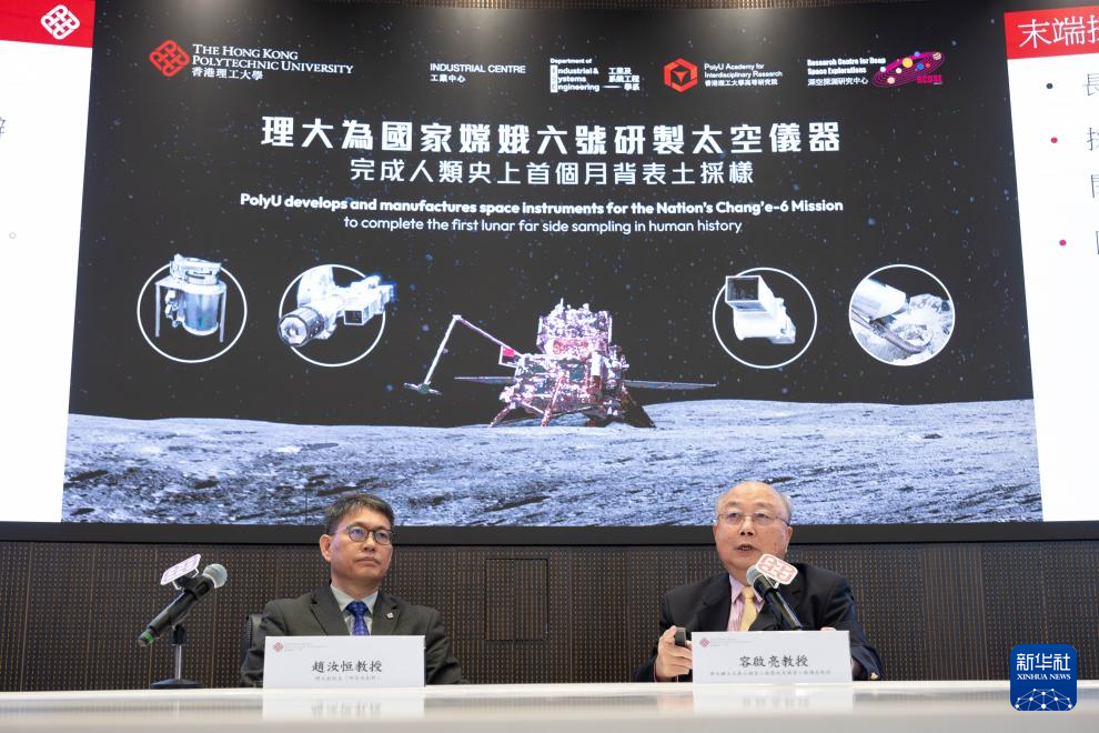 新华社香港6月7日电(记者张雅诗)嫦娥六号日前完成世界首次月球背面采样。香港理工大学(简称“理大”)7日表示,该校科研团队与中国空间技术研究院合作研制的“表取采样执行装置”,助力完成这项历史性任务。