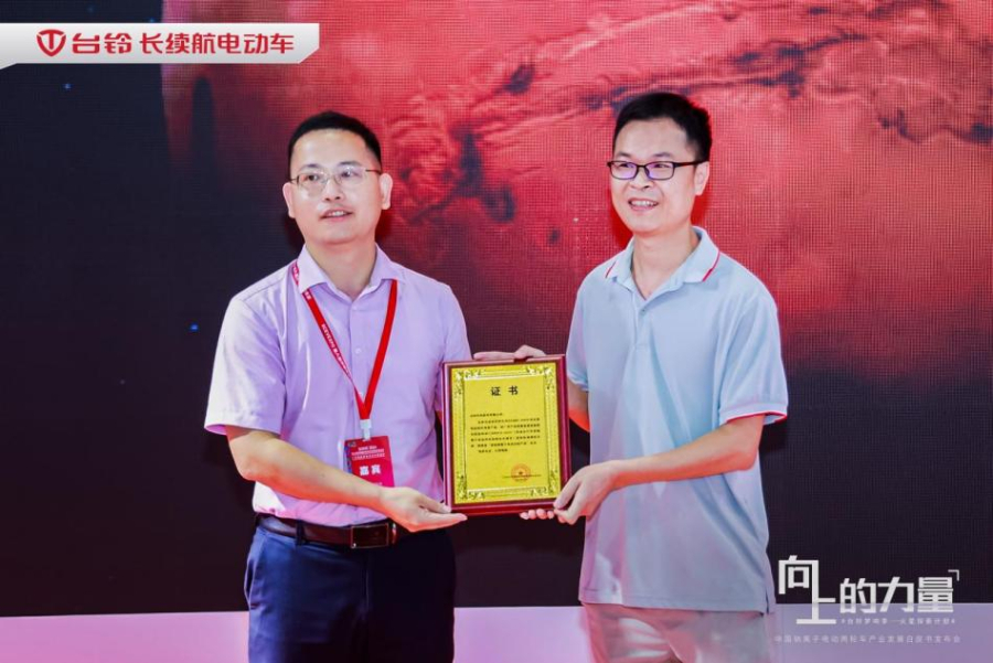 在现场发布环节,台铃还获颁《首批钠离子电池达标产品》证书。获此殊荣激励,台铃将持续优化钠电技术,积极为行业提供钠电产品应用指导方法。