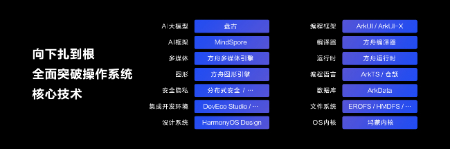 HarmonyOS NEXT由内而外,焕然一新,打造全栈自研的技术底座,从操作系统内核、文件系统,到编程语言、编译器/运行时、编程框架,再到设计系统、集成开发环境,以及AI框架和大模型等等,实现了全栈自研。