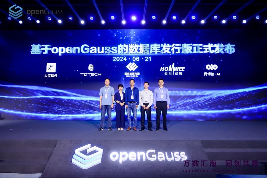 会上,国家能源集团信息技术公司(数据中心)、四川虹微技术有限公司、成都鼎桥通信技术有限公司、北京尚博信科技有限公司、大汉软件股份有限公司五家合作伙伴结合自身业务场景,联合发布了基于openGauss的数据库企业自用版本。