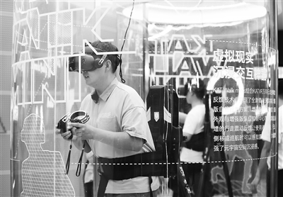 在位于江苏苏州昆山市的昆山元宇宙产业园元宇宙展示厅里,参观者体验VR游戏。新华社记者 杨磊摄