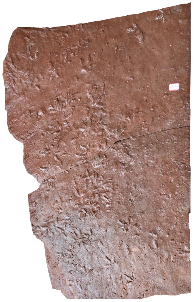 据了解,从2020年至2022年,黄河三峡大景区管委会恐龙博物馆馆长尤文泽、博物馆工作人员罗大俊在永靖县的关山乡红楼村、太极镇孔家寺村及刘家峡恐龙国家地质公园内先后发现了6处早白垩世足迹点。所有足迹均保存于下白垩统河口群的红色砂岩中,6处足迹点中的5处发现了鸟类足迹,其中有一处伴生有龟类足迹。