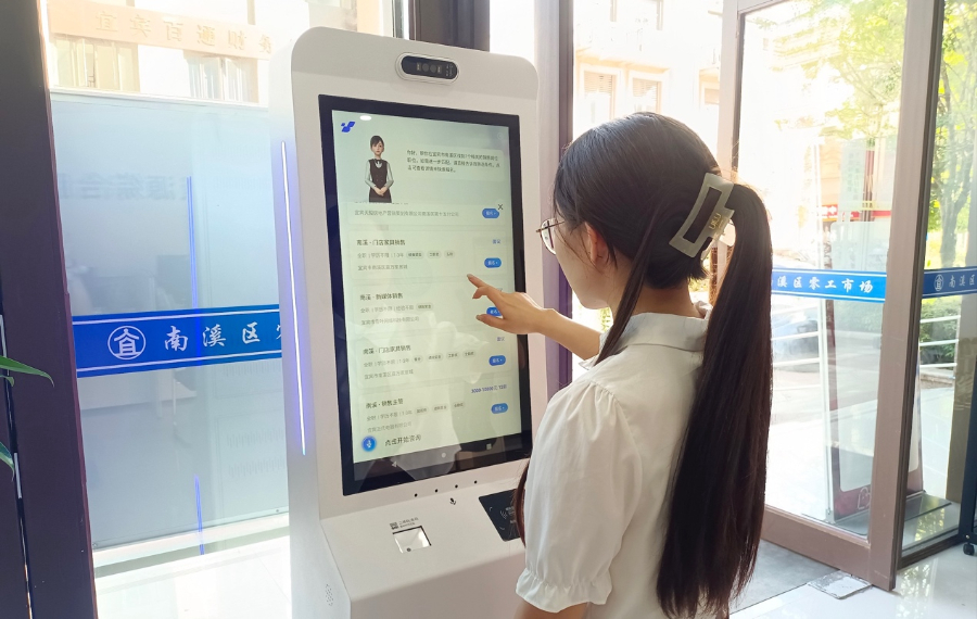 近日,一位用户在四川宜宾南溪零工市场,体验就业AI数智人“小顾”数智化求职服务