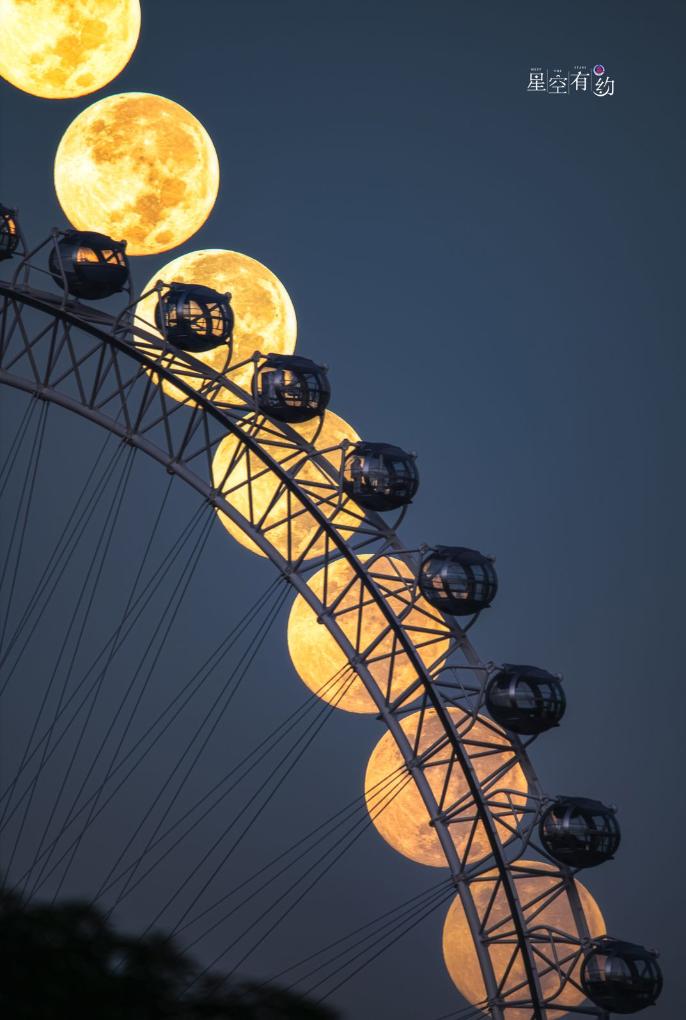 如何欣赏这轮“超级中秋月”?“日落后一个多小时是赏月最佳时段,这时月亮刚升起不久,悬在地平线之上不高的地方,肉眼看起来颜色和形态都会和在高空时不太一样;此时夜幕还未完全降临,地面建筑依稀可见,在其映衬之下,月亮也会显得特别大、特别圆。”修立鹏说。