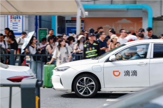 9月16日,为确保台风后旅客的安全出行,在上海市交通委的指导下,滴滴迅速集结500余辆网约车组建保障车队,协助快速疏散浦东机场夜间到港的旅客。