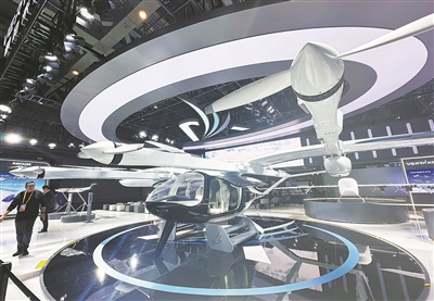 在以“出行,未来无限可能”为主题的汽车展区,本届进博会最大展品——御风未来2吨级大型M1 eVTOL载人真机首次公开亮相。现场开展的“首批飞行体验官”活动,让参观者体验打“飞的”上下班。