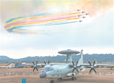 第十五届中国国际航空航天博览会将于11月12日在广东珠海开幕。图为空军八一飞行表演队在珠海进行适应性飞行训练。新华社记者 刘大伟摄