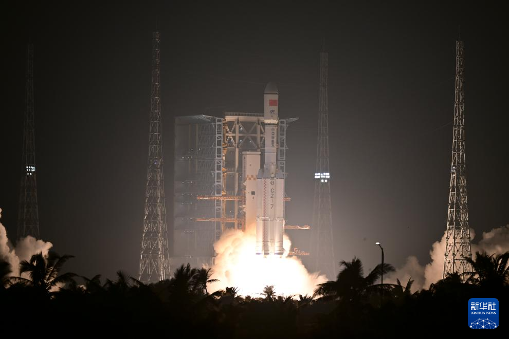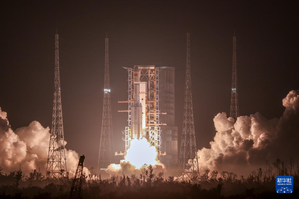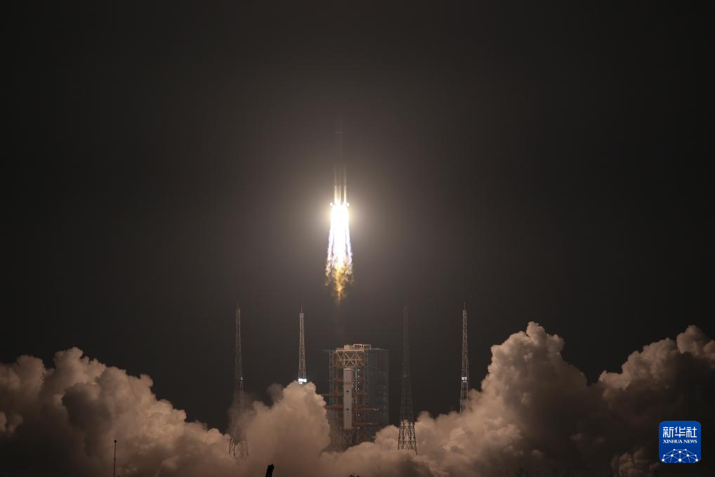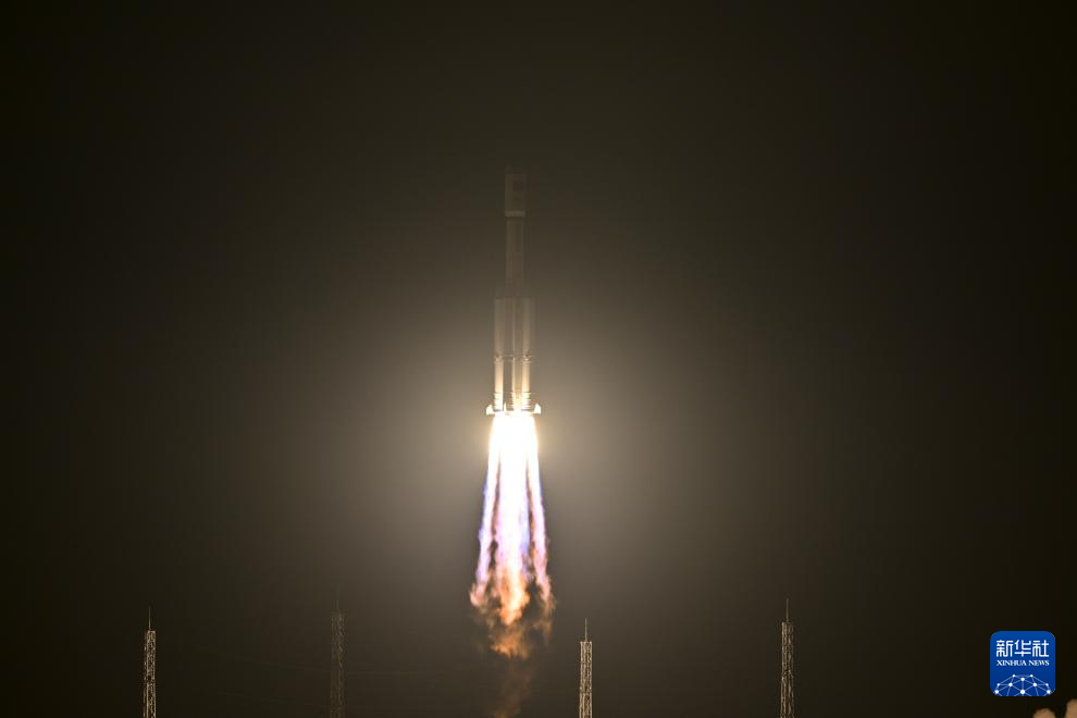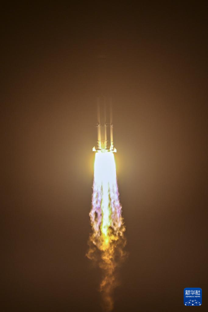 11月15日23时13分,搭载天舟八号货运飞船的长征七号遥九运载火箭,在我国文昌航天发射场点火发射,约10分钟后,天舟八号货运飞船与火箭成功分离并进入预定轨道,之后飞船太阳能帆板顺利展开,发射取得圆满成功。新华社发(骆云飞摄)