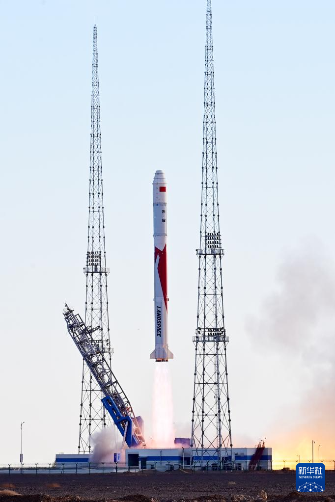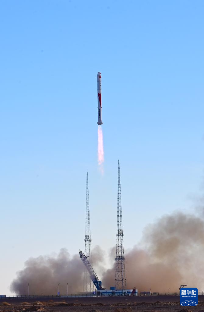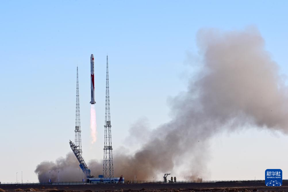 11月27日10时00分,朱雀二号改进型遥一运载火箭在东风商业航天创新试验区发射升空,将搭载的光传01、02试验星顺利送入预定轨道,飞行试验任务获得圆满成功。新华社发(汪江波 摄)