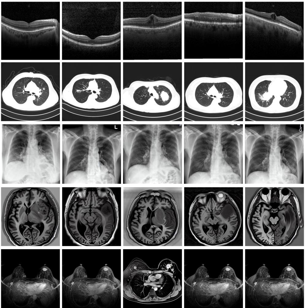 实验结果显示,MINIM生成的合成数据在医生主观评测指标和多项客观检验标准方面达国际领先水平,在临床应用中具有重要参考价值。在真实数据基础上,使用20倍合成数据在眼科、胸科、脑科和乳腺科的多个医学任务准确率平均可提升12%至17%。