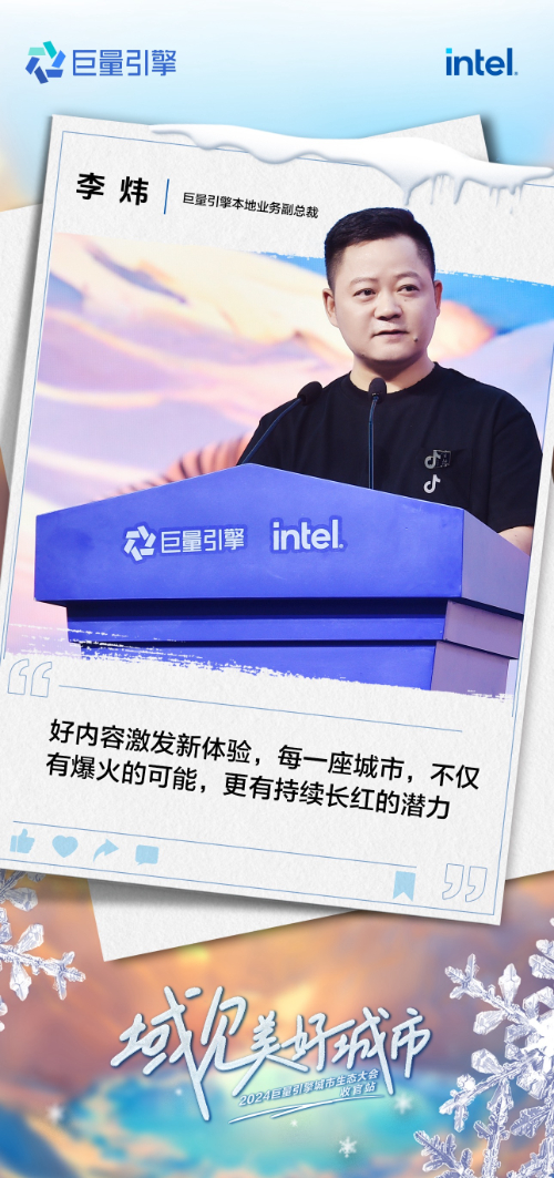 「域见美好城市」2024城市生态大会从成都起航,从“乘风”到“造风”一路吹过古城邯郸、非遗泉州、山城重庆,顺利抵达美好冰雪之境——吉林,整合平台资源,链接地方政府、企业、商家、达人和用户,孵化小城市大流量的新型文旅联动模式。