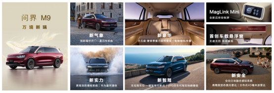 此次,问界M9全面进化,携全向立体融合感知系统、华为星河通信、华为车语系统2.0、智能隐私车窗、智能激光投影巨幕系统2.0、MagLink Mini、更高效的增程系统等科技亮点,致力于为用户带来全方位的极致出行体验。智能科技持续精进的同时,问界M9带来更多奢享体验优化,新增金瑞红车色、21英寸多辐星耀轮毂,电动踏板、电动拖车钩等豪华选装,更好满足用户的个性化需求。