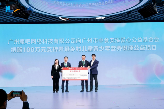 过去8年来,瘦吧科技在追求商业成功的同时,积极履行社会责任,投身公益事业。启动仪式上,瘦吧科技向广州市中食安泓爱心公益基金会捐赠100万元爱心善款,专项用于开展乡村儿童青少年营养健康的公益项目。
