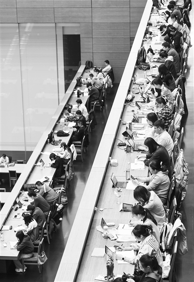在世界读书日即将来临之际,很多读者选择与书相伴。图为4月22日,读者在北京国家图书馆内阅读、学习。新华社记者 殷刚摄