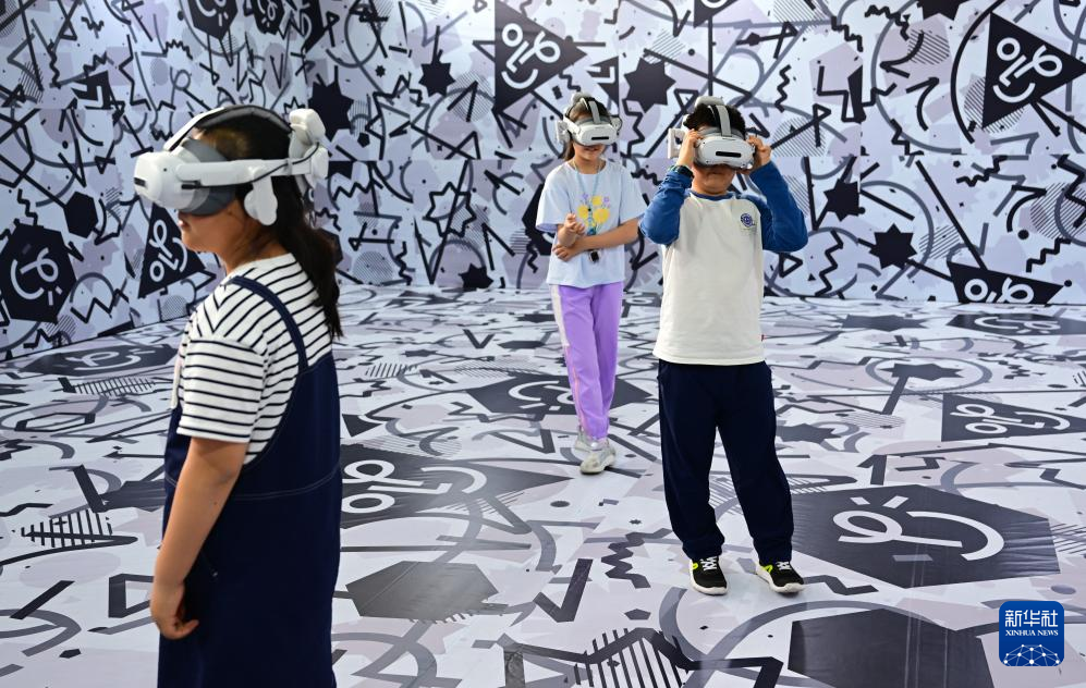 4月26日,小朋友们在第三届中国(安徽)科技创新成果转化交易会上体验VR设备。