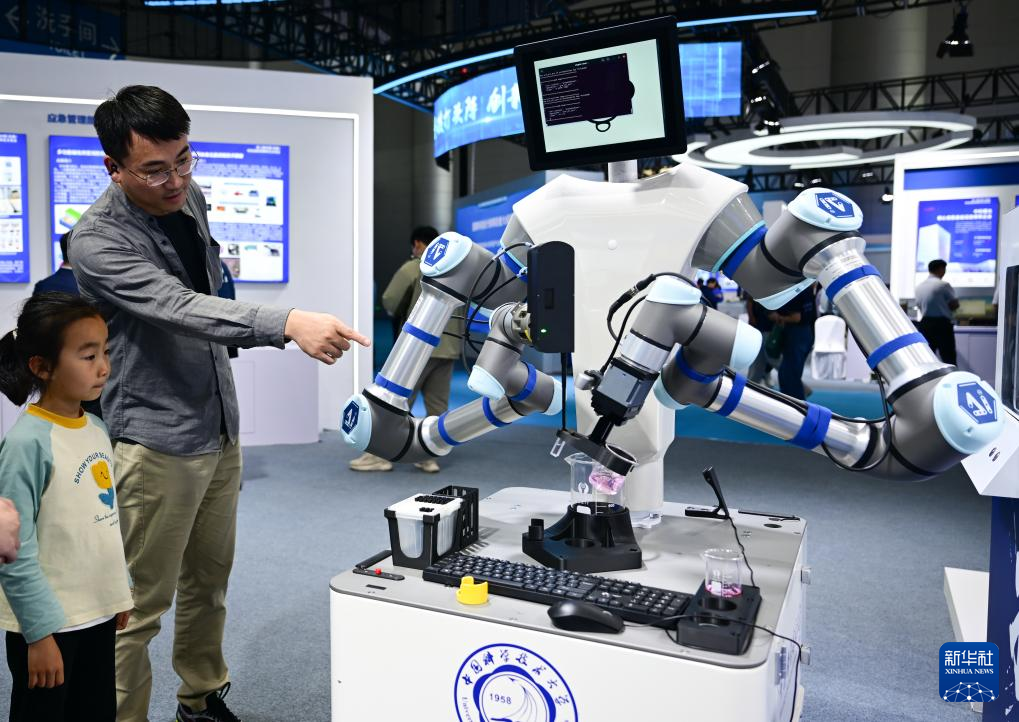 4月26日,观众在第三届中国(安徽)科技创新成果转化交易会上参观一款数据驱动的全流程机器化学家。