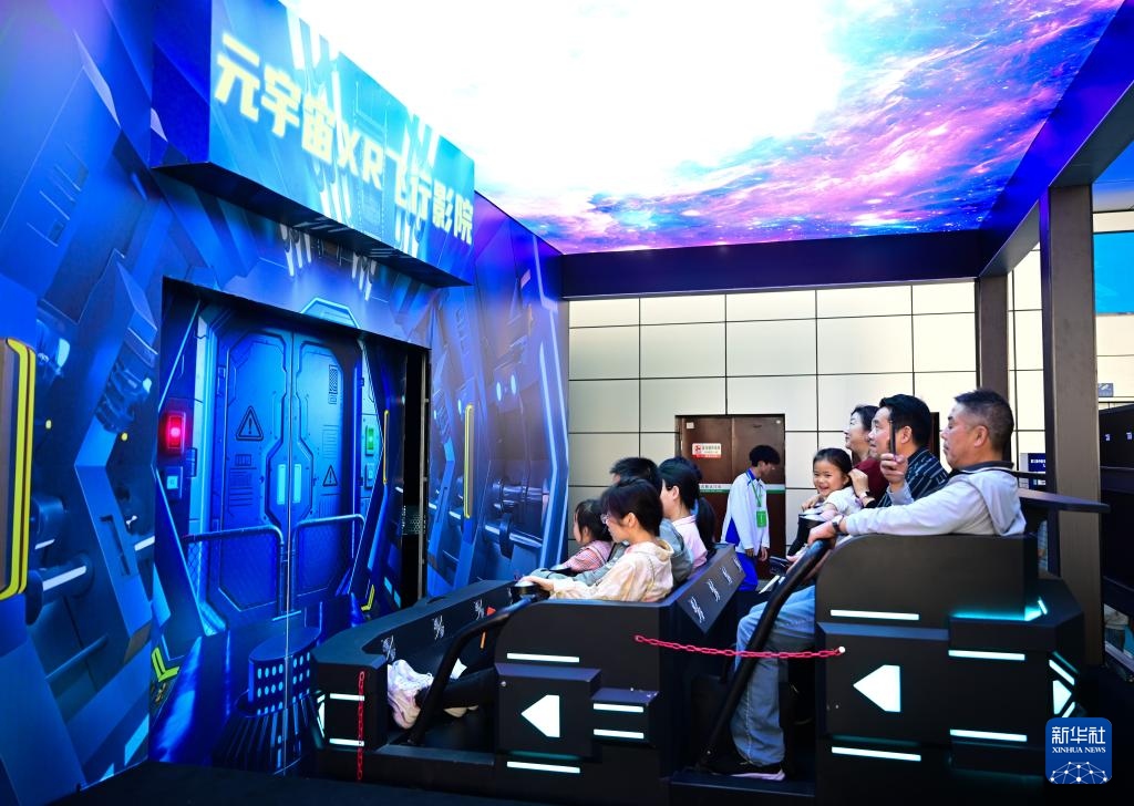 4月26日,观众在第三届中国(安徽)科技创新成果转化交易会上体验元宇宙XR飞行影院。