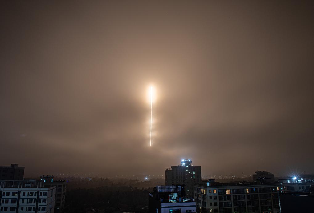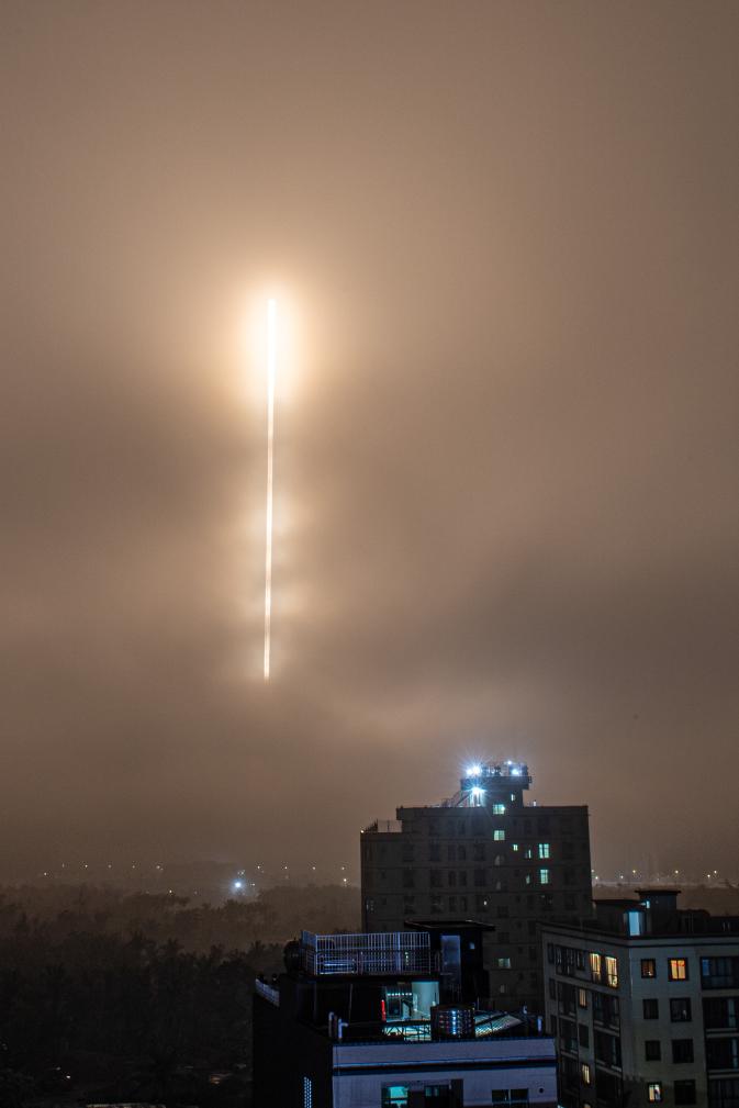 这是记者今天凌晨4时10分在海南文昌拍到的场景。