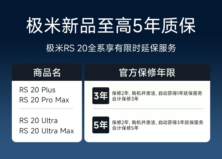 值得一提的是,RS 20全系列产品享有限时延保服务,至高可获5年官方质保。于极米而言,这无疑是对标国际一线品牌服务的又一重要举措,在激烈的市场竞争中,得以看出极米作为行业领军者对于产品的信心及品牌责任意识。于消费者而言,这意味着更安心的购买决策,无需担心短期内产品故障,减少因为质量问题而产生的额外支出,降低购买顾虑。极米通过延长售后服务周期,用产品构建起品牌与用户之间的信任纽带,持续追求卓越的品牌服务。