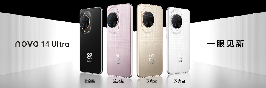 nova 14系列重构经典的星耀环设计,双圈立体雕刻工艺,由616颗星光饰钉汇成耀眼星环。nova 14 Ultra从湖面的光影交错中撷取灵感,成就全新浮光金配色,并提供浮光白、流光紫、曜金黑等个性选择;nova 14 Pro以大自然为底色,匠心呈现冰晶蓝、冰晶粉、凝霜白、羽砂黑四款潮流配色。两套契合潮流与风尚的ID设计,彰显年轻一代的鲜活生命力。