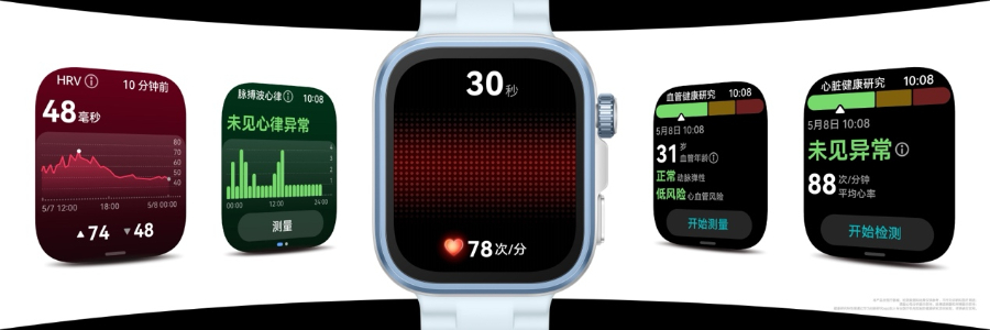 此外,华为WATCH FIT 4系列支持心率、血氧、情绪健康等多项健康监测功能。新品新增的HRV(心率变异性)监测功能,能够反映心跳的变化,关联各种病理状况,为用户提供了更全面的健康管理方案,5月底全系OTA升级,能够支持全天候HRV。在睡眠健康场景上,华为WATCH FIT 4系列通过高性能传感器,配合睡眠呼吸暂停筛查软件进行检测,可实现对睡眠呼吸暂停低通气综合征的初步筛查。Pro款还搭载了玄玑感知系统,无论是日常运动还是健康监测,华为WATCH FIT 4系列都能成为用户的得力助手。