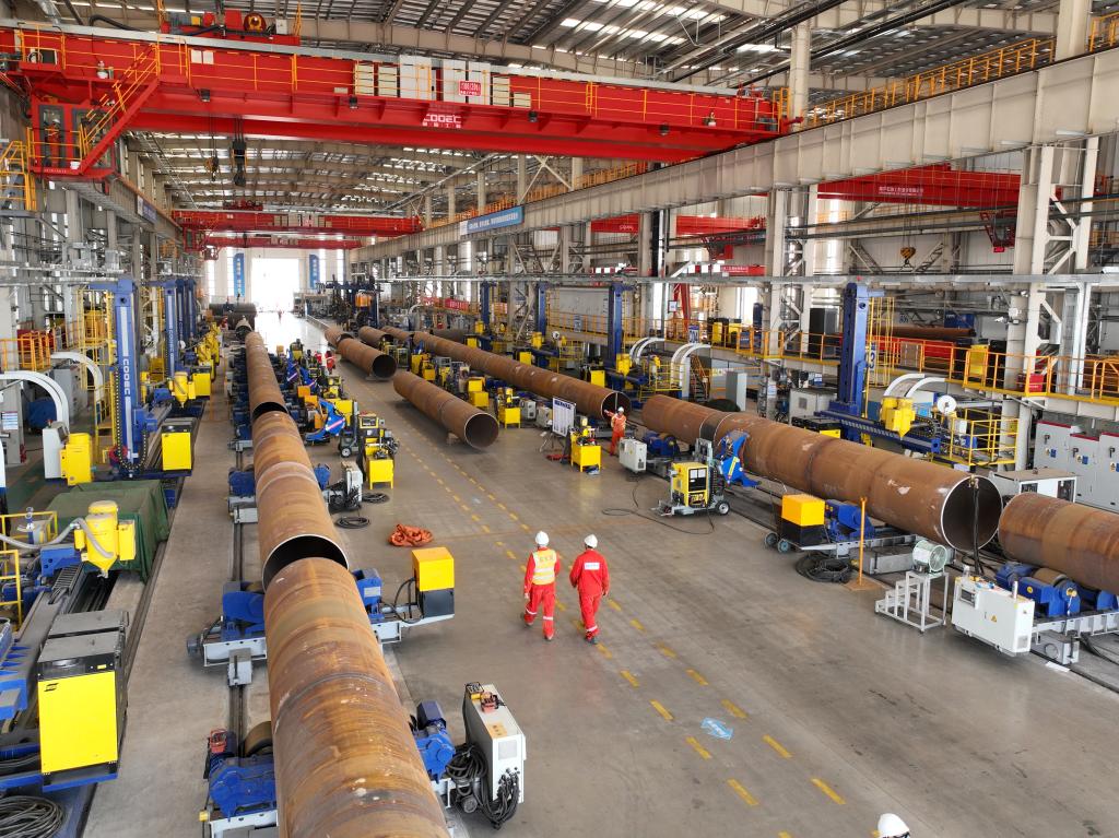 海洋石油工程股份有限公司在这座于去年全面投产的“智能工厂”里引进了先进节能环保和智能设备600余台套。这些依托大数据、人工智能等先进技术的设备,总体生产效率较传统模式可提升20%以上。