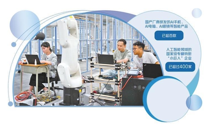 “制造业是人工智能技术产品应用落地的重要领域。”工业和信息化部总工程师谢少锋介绍,近年来,人工智能与制造业融合发展加速,国产厂商研发的AI手机、AI电脑、AI眼镜等智能产品已超百款,人工智能领域的国家级专精特新“小巨人”企业已经超过400家,产业生态持续优化。