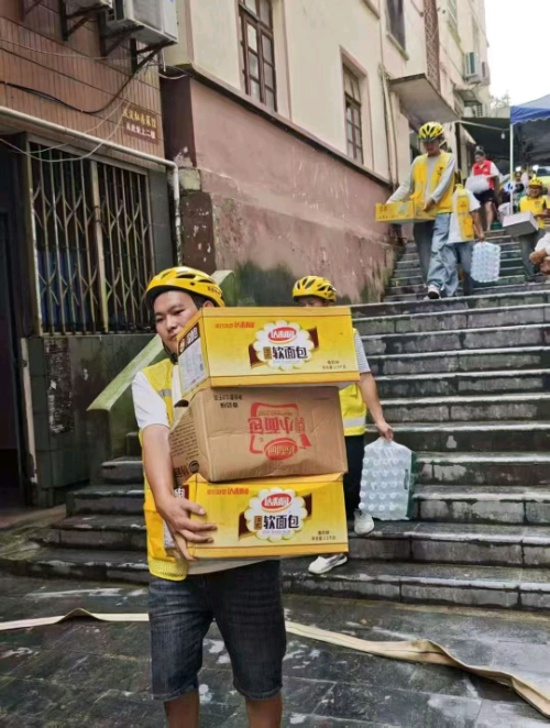榕江县美团外卖骑手协助当地恢复工作、搬送救灾物资