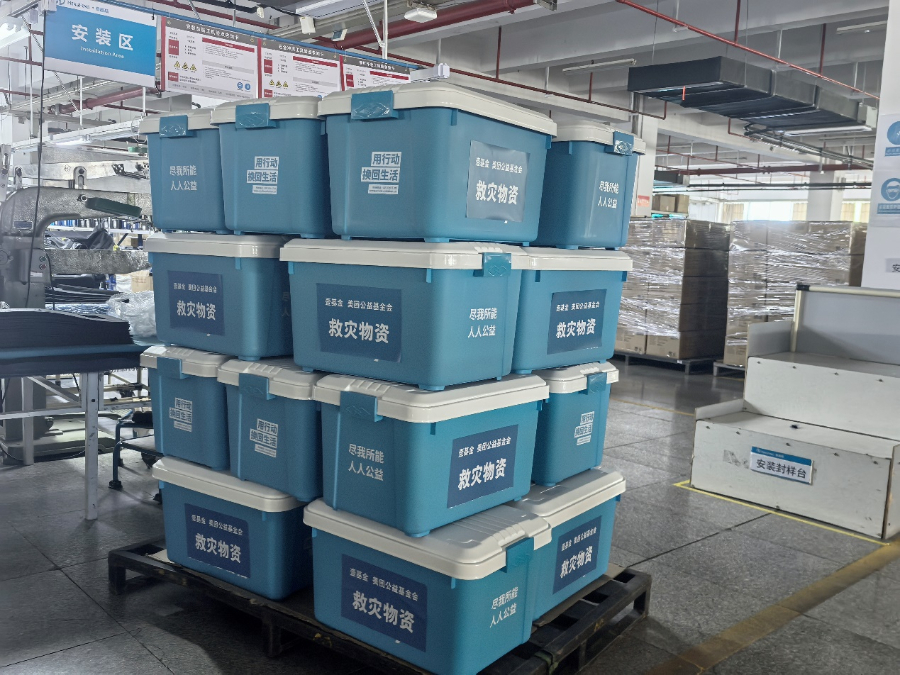美团公益联合壹基金捐赠的物资正在装箱准备发车