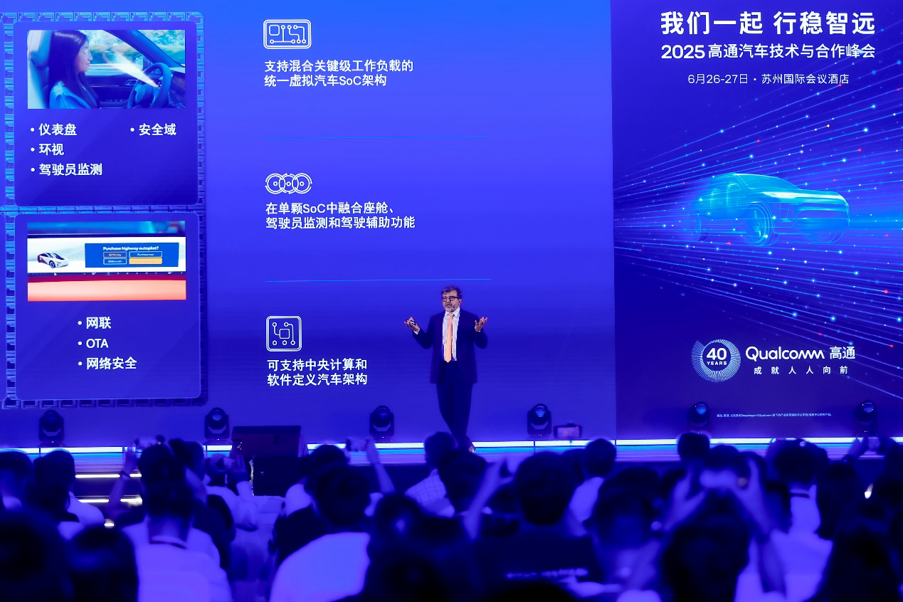 6月26日-27日,2025高通汽车技术与合作峰会在苏州举行。峰会以“我们一起,行稳智远”为主题,探讨智能汽车产业未来发展新趋势和新机遇。在主论坛演讲和采访中,高通技术公司汽车、工业及嵌入式物联网事业群总经理Nakul Duggal表示,中国正成为全球汽车技术创新中心,中国也是高通非常重要的市场,高通将众多“行业首创”引入中国汽车生态系统,携手推动行业实现规模化发展。
