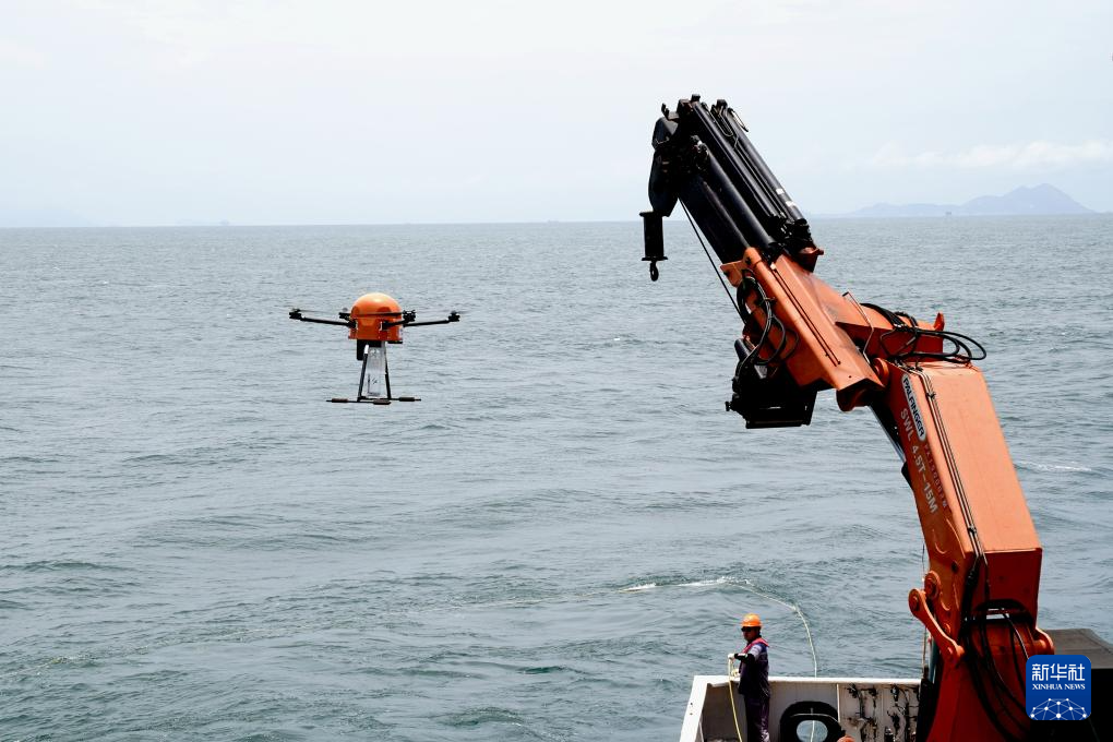 7月8日,跨域机器人从“向阳红10”号起飞开展科考试验。新华社记者 张建松 摄
