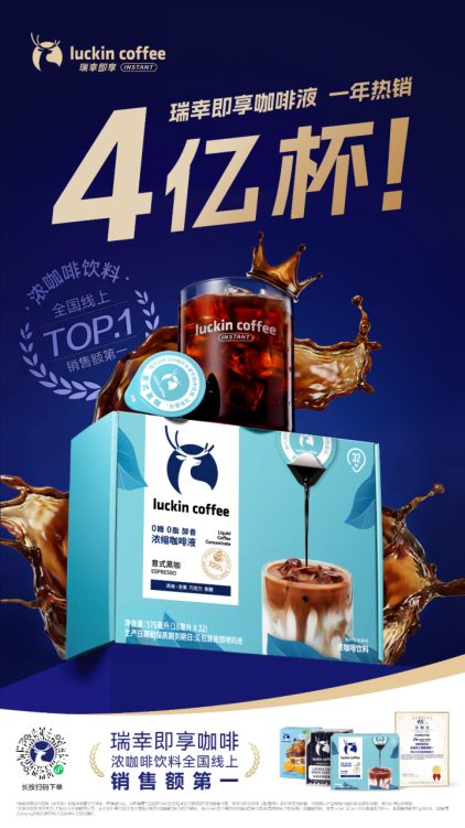 近日,瑞幸即享咖啡获得全球增长咨询公司沙利文(Frost & Sullivan)权威认证:按 2025 年销售额计算,瑞幸即享浓咖啡饮料取得全国线上销售额第一。据悉,此次获认证的浓咖啡饮料矩阵包括瑞幸即享经典系列浓缩咖啡液、冷萃咖啡液、果C美式系列咖啡液、醇香浓缩咖啡液、随享黑咖浓缩咖啡液等系列产品。瑞幸即享咖啡数据显示,其咖啡液产品2025年全年销售超过4亿杯。这意味着,在预包装咖啡赛道,瑞幸即享咖啡交出了一份亮眼的成绩单。