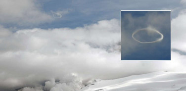 冰岛火山喷出罕见蒸汽圈 似吸烟者吐出烟圈