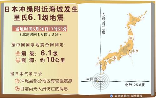 日本冲绳附近海域发生里氏6.1级地震