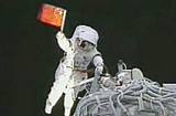 航天员翟志刚在舱外挥舞中国国旗[组图]