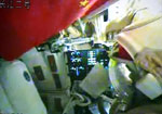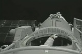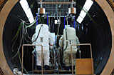 神舟七号航天员在轨道舱内试穿舱外航天服