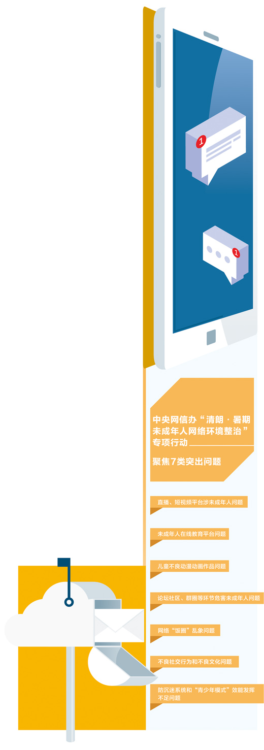 近期,中央网信办启动“清朗·暑期未成年人网络环境整治”专项行动,针对直播、短视频平台涉未成年人问题,严禁16岁以下未成年人出镜直播,严肃查处炒作“网红儿童”行为,禁止诱导未成年人打赏行为,防止炫富拜金、奢靡享乐、卖惨“审丑”等现象对未成年人形成不良导向。坚决清理散布暴力血腥、暗黑恐怖、教唆犯罪等内容视频。