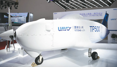 在珠海举行的第十三届中国国际航空航天博览会上,包括无人机、无人车、无人船在内的一批无人装备集中亮相。图为航展上展出的无人机。新华社记者 邓 华摄