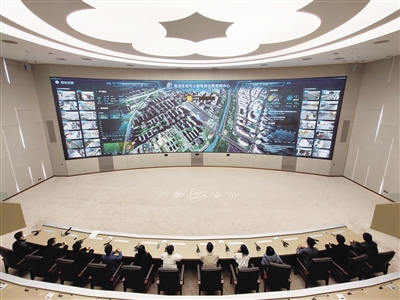 2月24日,海淀区城市大脑智能运营指挥中心多功能指挥大厅,一面高5.8米、长19.2米的巨幅屏幕上,汇聚着地区全景地图、实时监控画面、各种数据以及突发事件等多类信息。