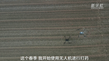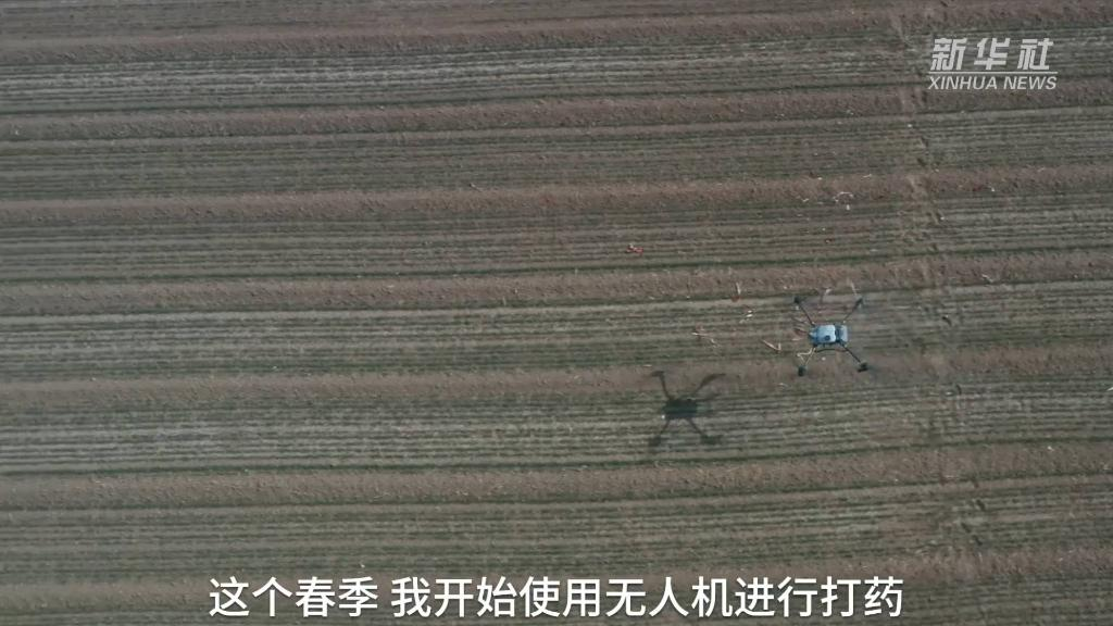 这个春季,席文虎开始使用无人机进行打药,1天即可打完,而以前需要10个多人一个多星期时间。