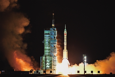 2021年10月16日0时23分,搭载神舟十三号载人飞船的长征二号F遥十三运载火箭点火发射。新华社记者 刘磊 摄