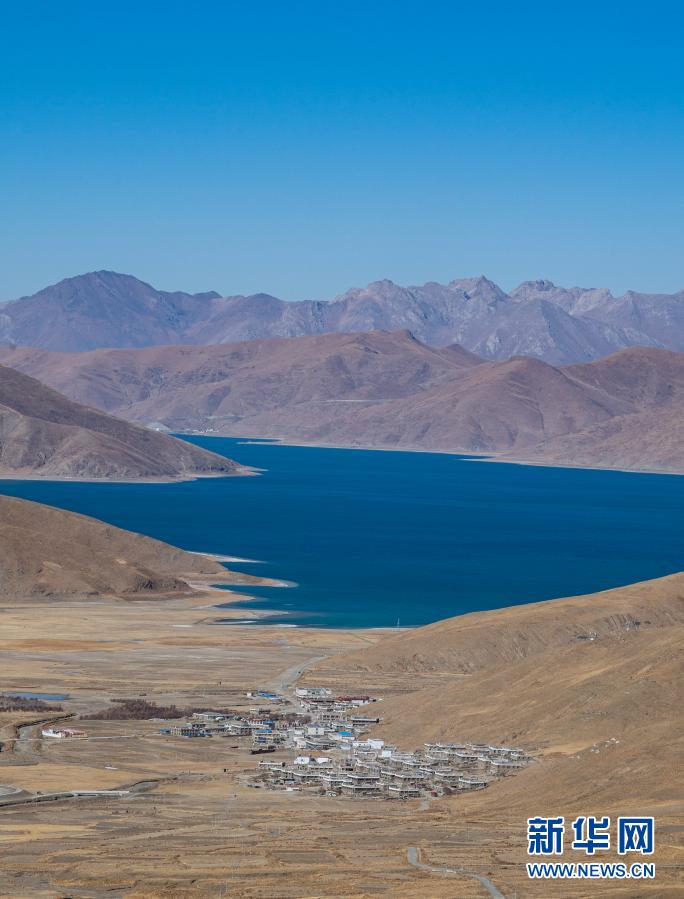 这是1月10日拍摄的羊卓雍错湖边的村庄。