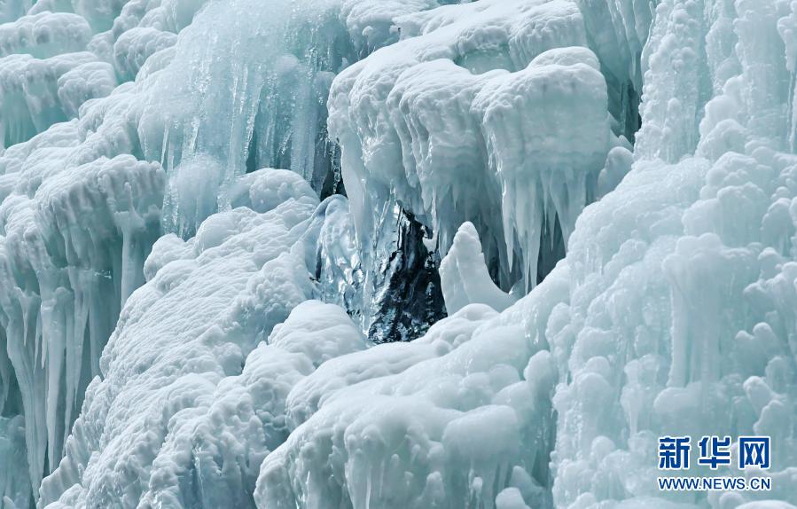 这是官鹅沟国家森林公园内的一处冰瀑景观(1月18日摄)。